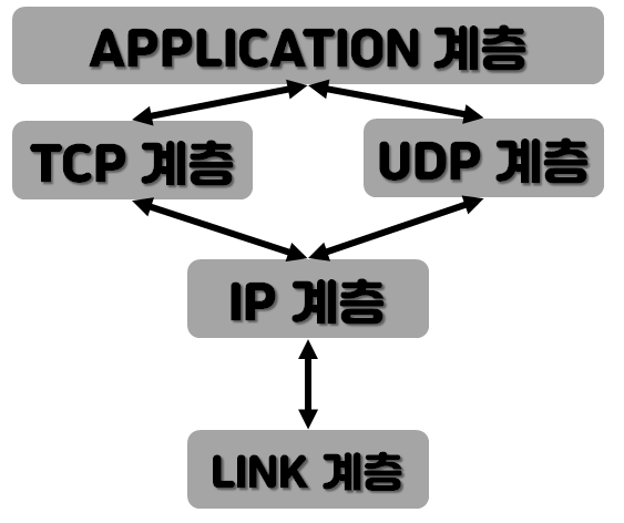 좌측의 그림을 볼 때, TCP/IP 스택이 총 4개의 계층으로 나뉘어 있음을 볼 수 있다.