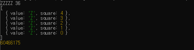 일부러 내가 만든 객체를 출력했다. 일단 객체를 숫자와 (1~10, A ~ 35) 지수 ( === sqaure )로 만들어주었다.