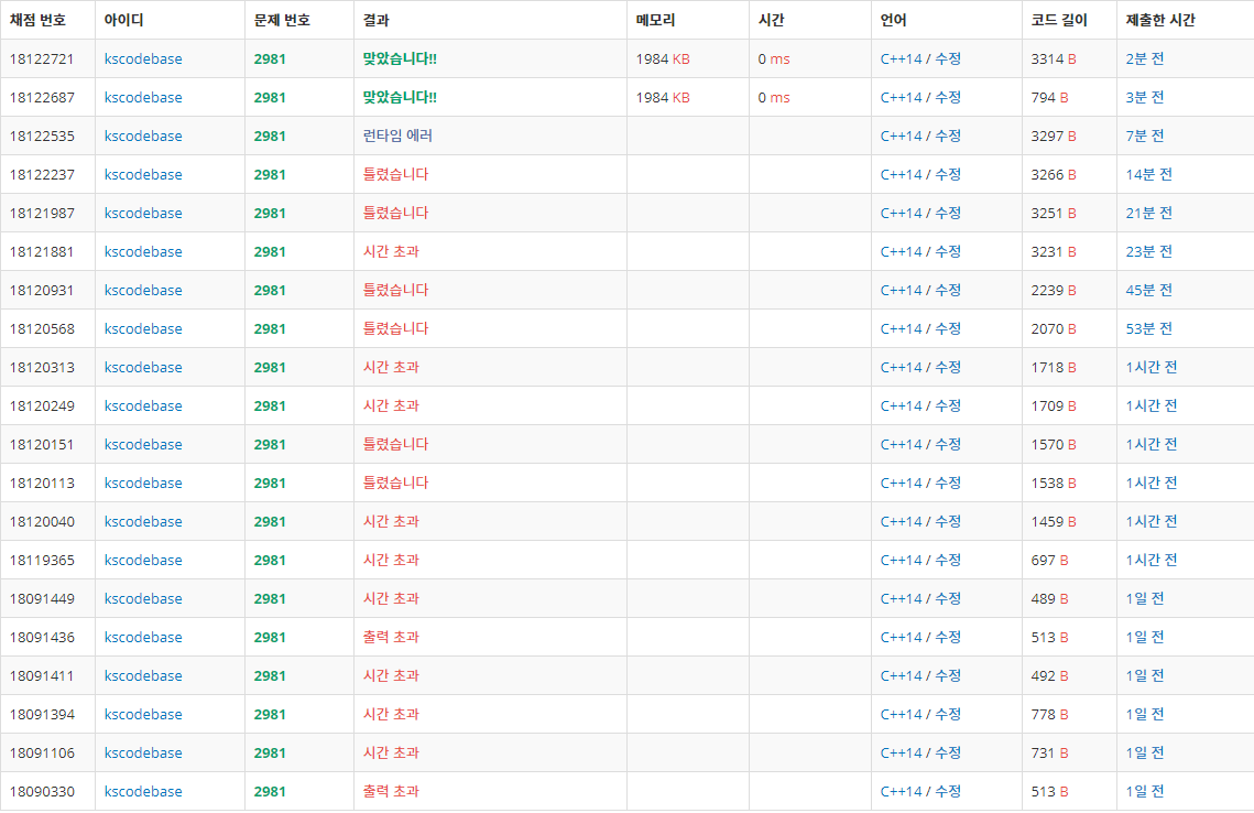 그래서 다른 방식을 찾아서 했는데도 시간초과가 미친 듯이 나왔다.