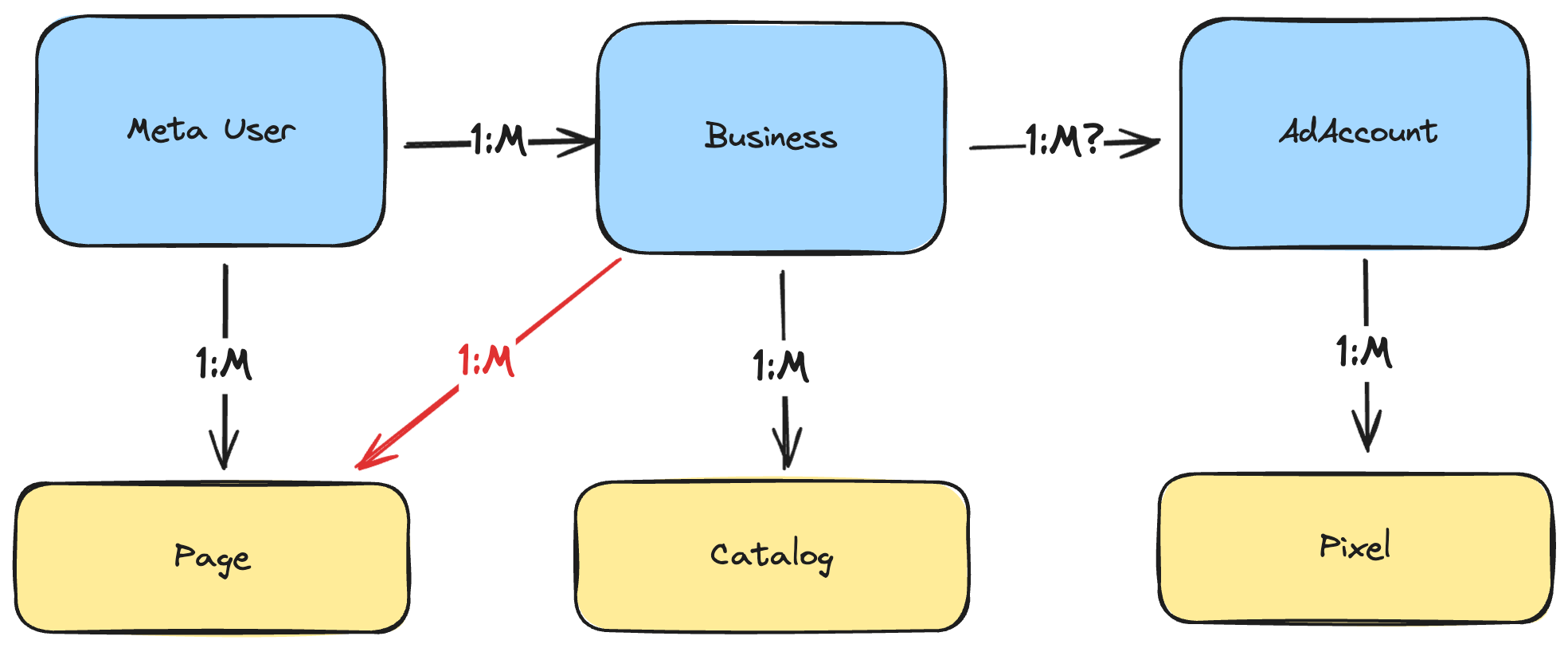 메타의 ERD 구조가 실제로는 어떠한지 모르지만, Meta Marketing API를 호출하면서 광고 자산들의 구조에 대해 대략 생각해볼 수 있다.