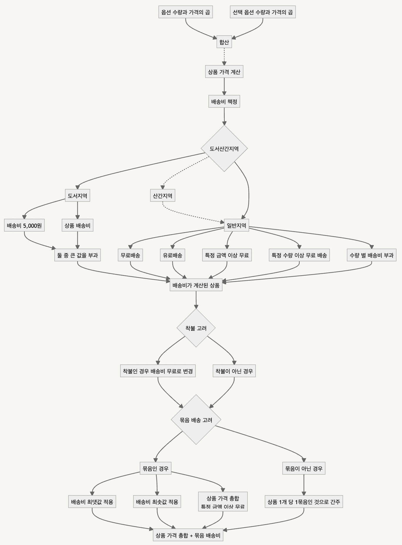 - 묶음으로 된 상품들의 총합을 더해, ~원 이상인 경우 무료로 책정